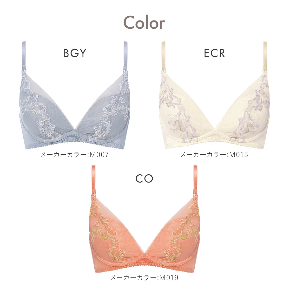 カラーBGY-ブルーグレー、ECR-エクリュ、CO-コーラル
