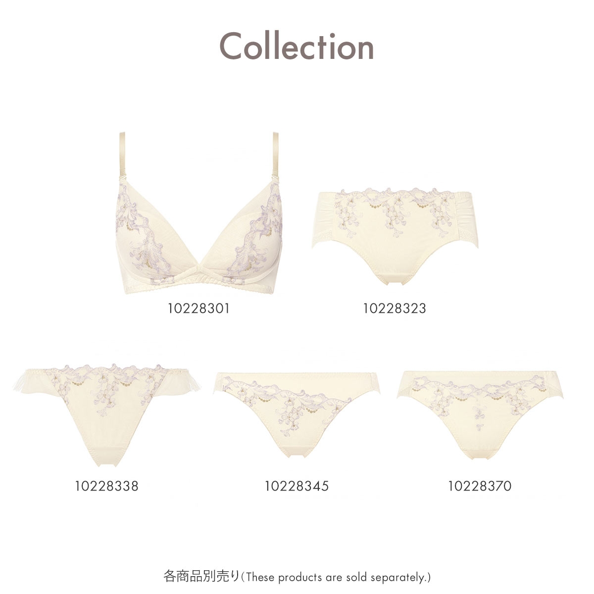 女神「ヴィーナス」をイメージした、華やかでロマンティックな「夢みるブラ」のノンワイヤータイプです。軽やかなチュールにラメ糸の刺繍がパールのようにはためき、光に包まれるような上品な胸元を演出します。