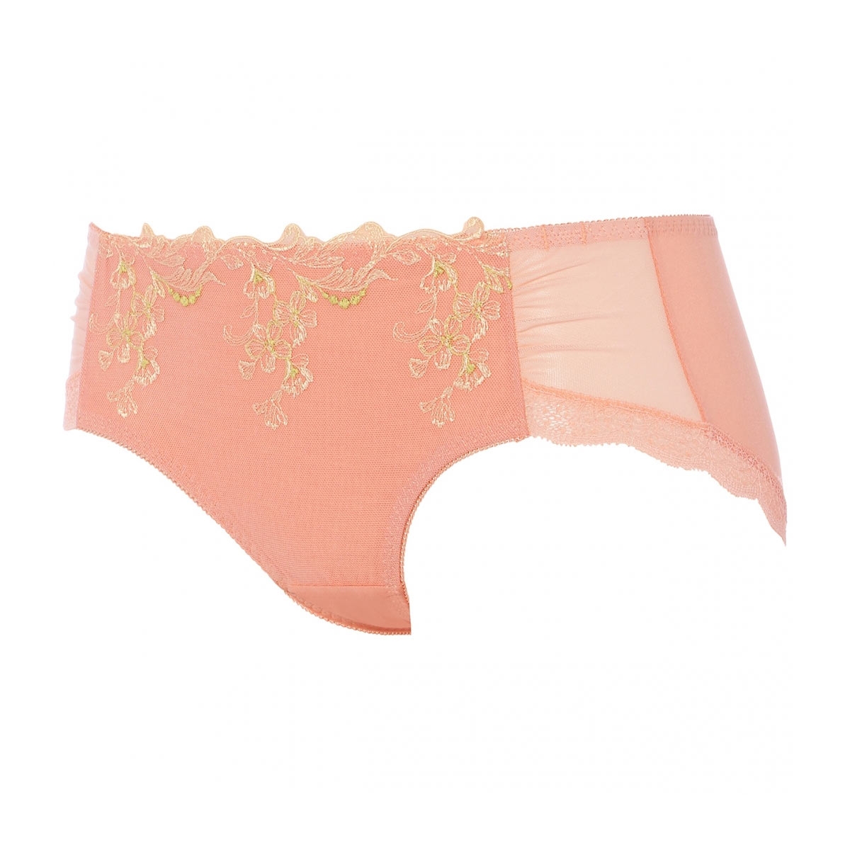 最大の魅力は、フロントを飾る繊細な刺繍レースと、サイドにあしらわれた軽やかなチュール切り替え。透け感のあるライトなチュールが、デザインに「抜け感」を与え、洗練された印象を引き立てます。身生地にはなめらかなベア天竺素材を採用しており、優れた伸縮性で体の動きにやさしくフィット。一日中ストレスフリーな履き心地を叶えます。
