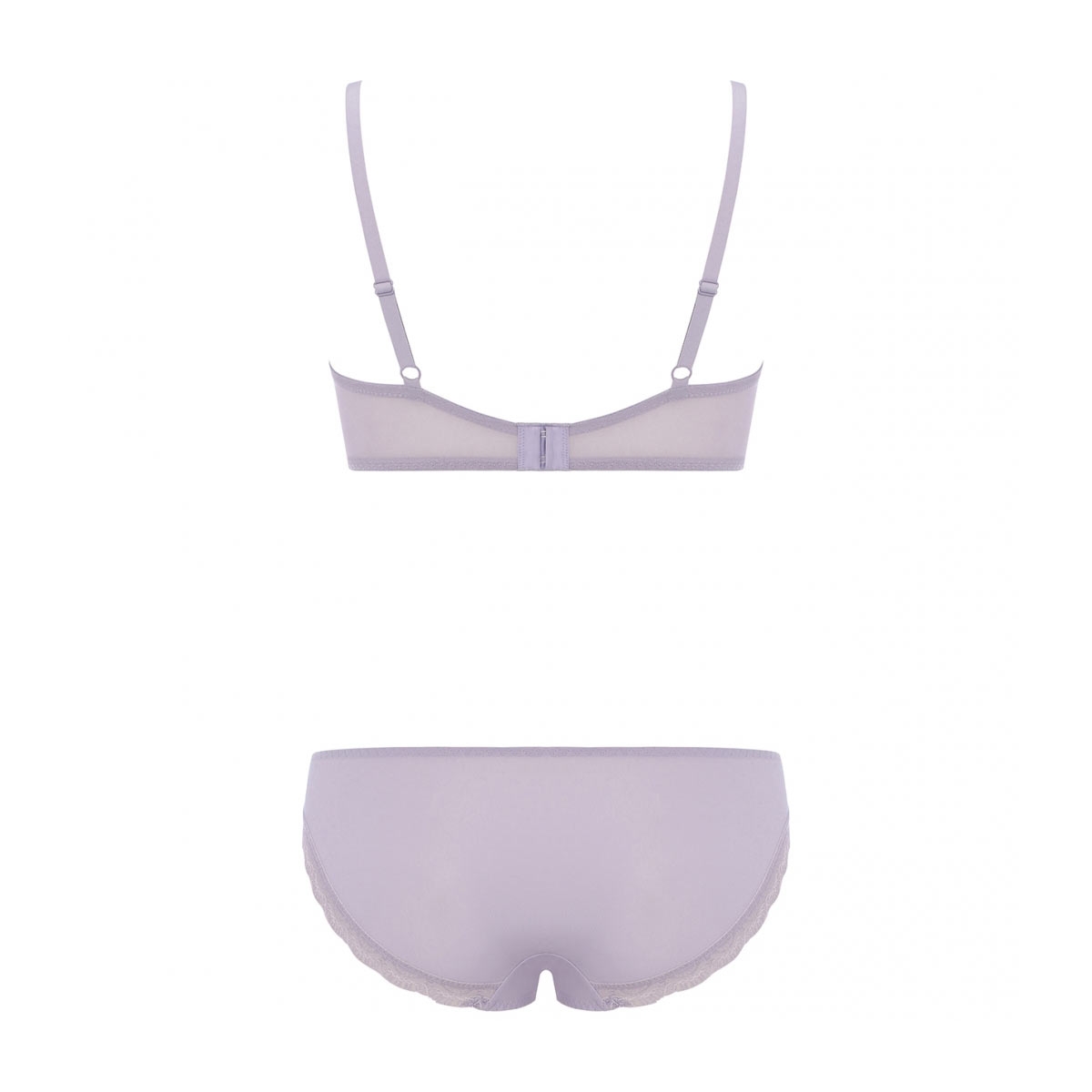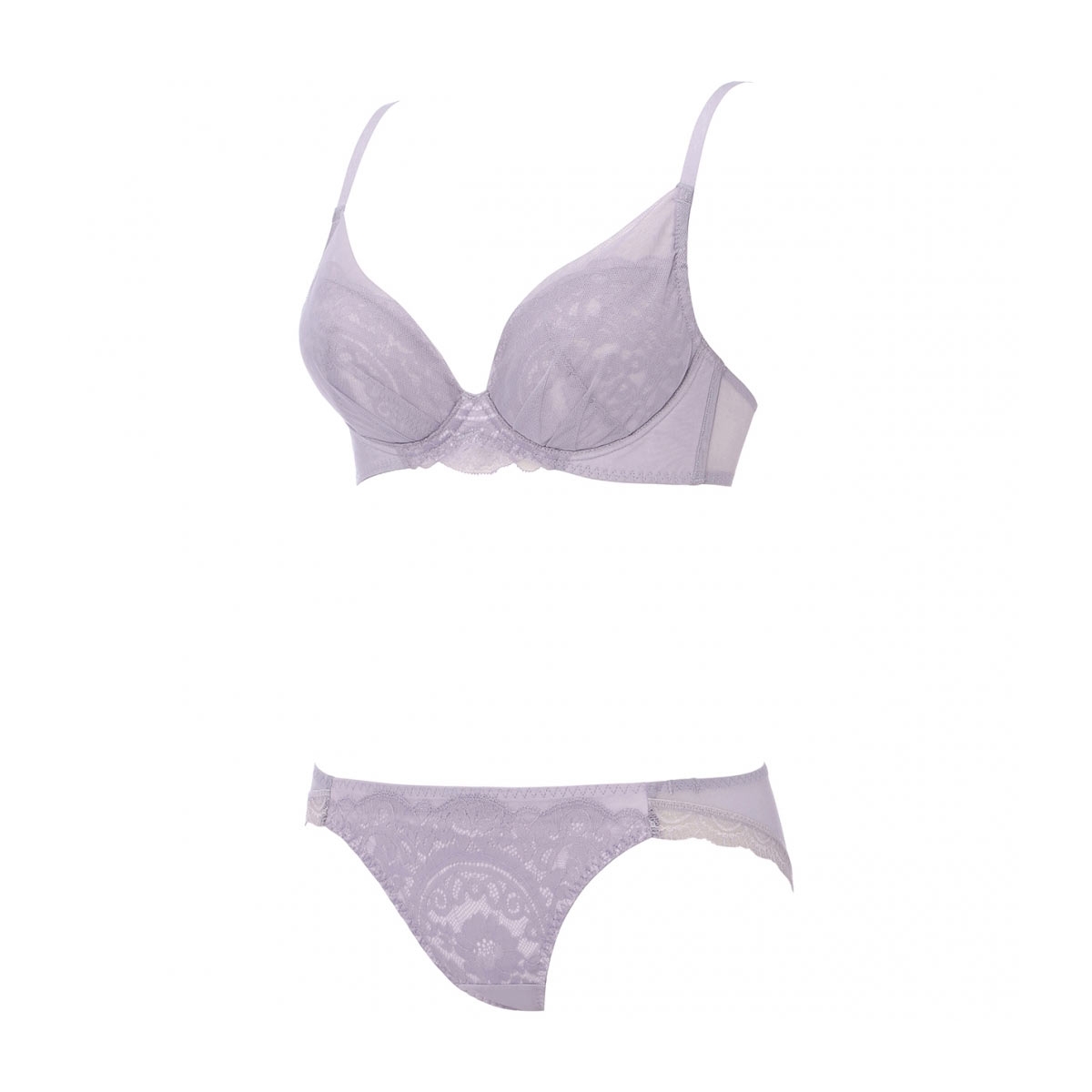 脇まわりをすっきり整え、理想のスリムなシルエットを叶える「脇高設計」のブラジャー&ショーツセットです。クラシカルな編みレースにシアーなチュールを重ねた、シックで上品な大人美しさが漂います。