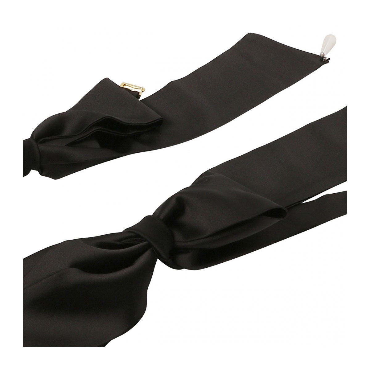 最大の魅力は、艶やかなサテンリボンと上品なパールモチーフを組み合わせた大人フェミニンなデザイン。ゴールドの金具がキラリと輝き、洗練された高級感を演出します。パーティードレスなどのオケージョンシーンでも、下着感を感じさせず、お洒落なインナー使いとして重宝します。