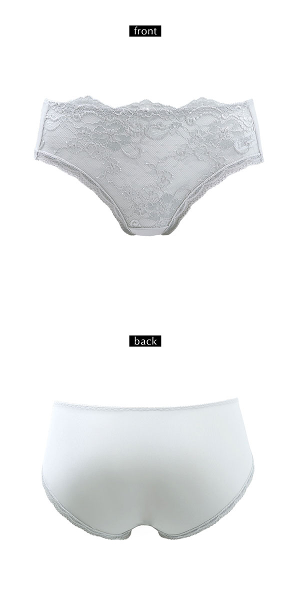 身生地にはタテヨコナナメにやわらかく伸縮する素材を使用。動きに合わせてお尻にフィットして快適なはき心地です。裾周りはレースで施し、ショーツのラインがひびきにくい仕様。フロントレースはうっすら肌を魅せるヌーディーなデザイン。