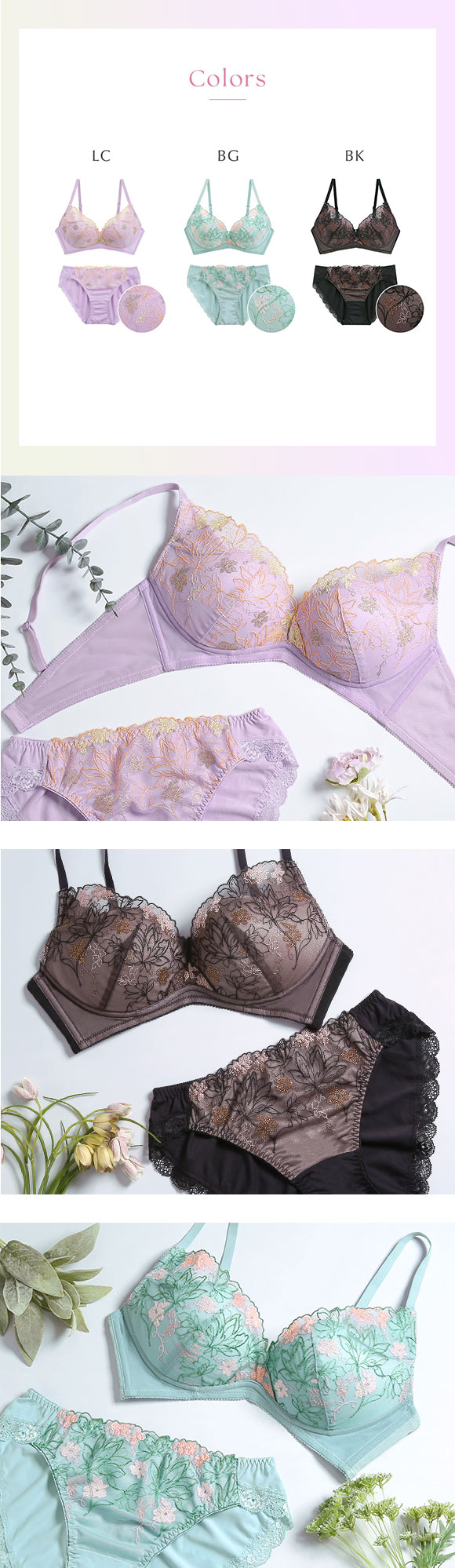 ノンワイヤーはここまできた!着るだけで瞬間-2kg見え、メリハリバストがあっという間に完成!スタイルアップを叶える立体カップとラメが可愛い透明感レースを組み合わせた、ノンワイヤーブラショーツセットです。