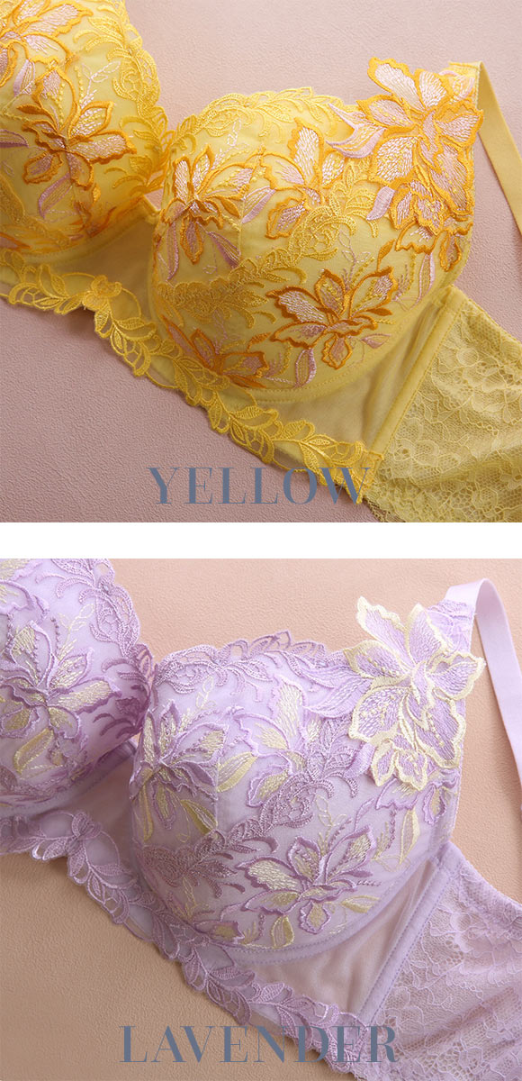 GHIサイズは専用のレースとパターンで、カップに隙間なく花を敷き詰めて、どこから見てもエレガントなスタイルに。バイリーンはふんわりと柔らかで心地良く、自然な丸みのある美しい胸へ。カップ裏の脇高ボーン&サイドパネルと 表の切り替えレースが、バストを中央に寄せて整えます。薄手パッドは取り外し可能。グラマーさんによくあるお悩みの、バストボリュームの左右差も調整して頂けます。
